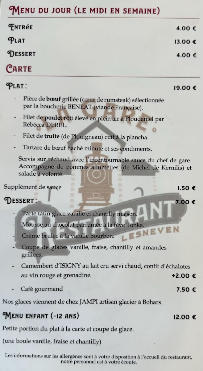 Welcome to La Gare, a culinary gem nestled in the heart of Lesneven, France. This charming restaurant artfully celebrates the essence of provincial French cuisine by emphasizing the use of locally sourced ingredients. The limited menu allows for a refined focus on quality, ensuring each dish showcases the natural flavors of its components.